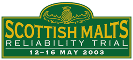 In all the ways that matter, the sixth SCOTTISH MALTS RELIABILITY TRIAL will follow the well proven path of its predecessors: a judicious mix of wonderful driving roads, stunning scenery, great tests, enjoyable regularities, and of course our own magic ingredient: visits to the distilleries producing some of Scotland's finest malt whisky, with plenty of opportunity to sample their wares when the day's driving is done. For 2003, though, there will be two important innovations.
